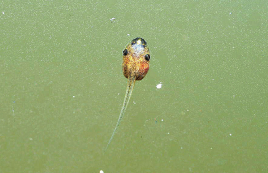 斑腿樹蛙的蝌蚪會捕食台灣原生種蛙類蝌蚪,將導致與其共域的台灣原生種蛙類無法順利繁衍下一代。楊懿如提供
