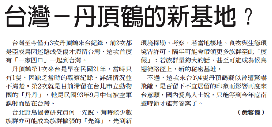 叫小鶴在台灣鶴來鶴去的足跡