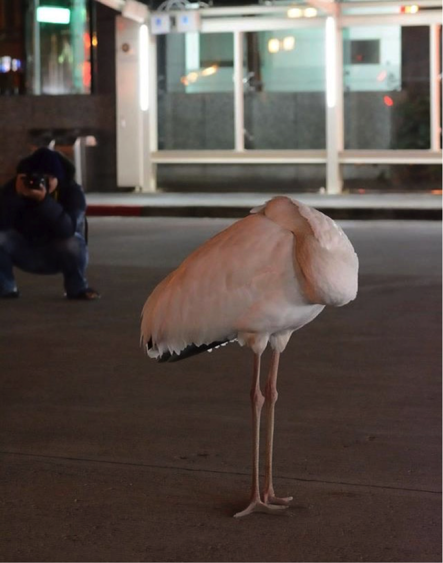 18日凌晨1點多,網友在「爆料公社」PO文「台北市八德路四段,松山捷運站旁(饒河街旁)出現不明生物,警方束手無策。」事後新北市動保處陳淵泉處長表示,「台北市松山車站的西伯利亞白鶴原來就是金山小鶴!」
