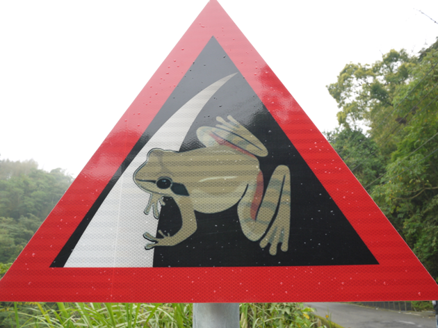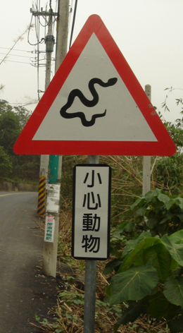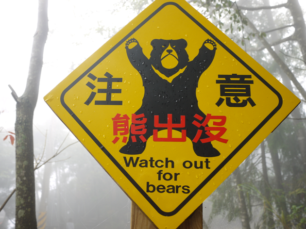 林務局東勢林管處在大雪山林道設有多種小心動物警示牌,包含梭德氏赤蛙、帝雉和黑熊。