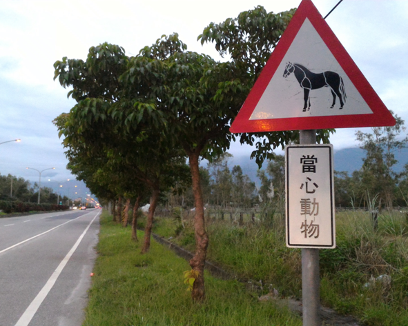 東華大學旁省道台11丙線上立有一面可能是全台唯一的小心馬匹警示牌。