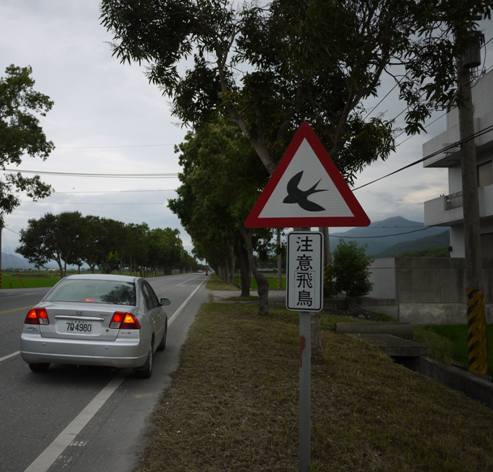 省道台9線花蓮玉里路段芒果行道樹下的「小心燕子」。