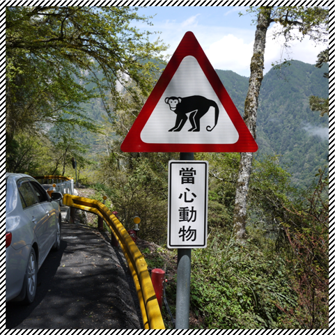 省道台8線太魯閣國家公園境內的「小心獮猴」。