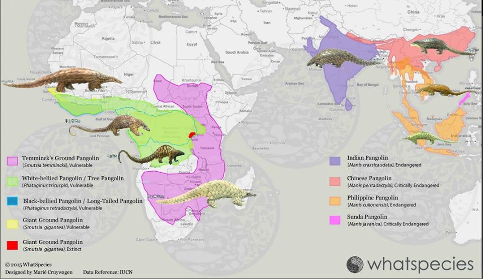 全世界有八種穿山甲,四種在亞洲,四種在非洲,分布區域在台灣、東南亞、印度及非洲。照片來源:We love pangolin By Mojito La