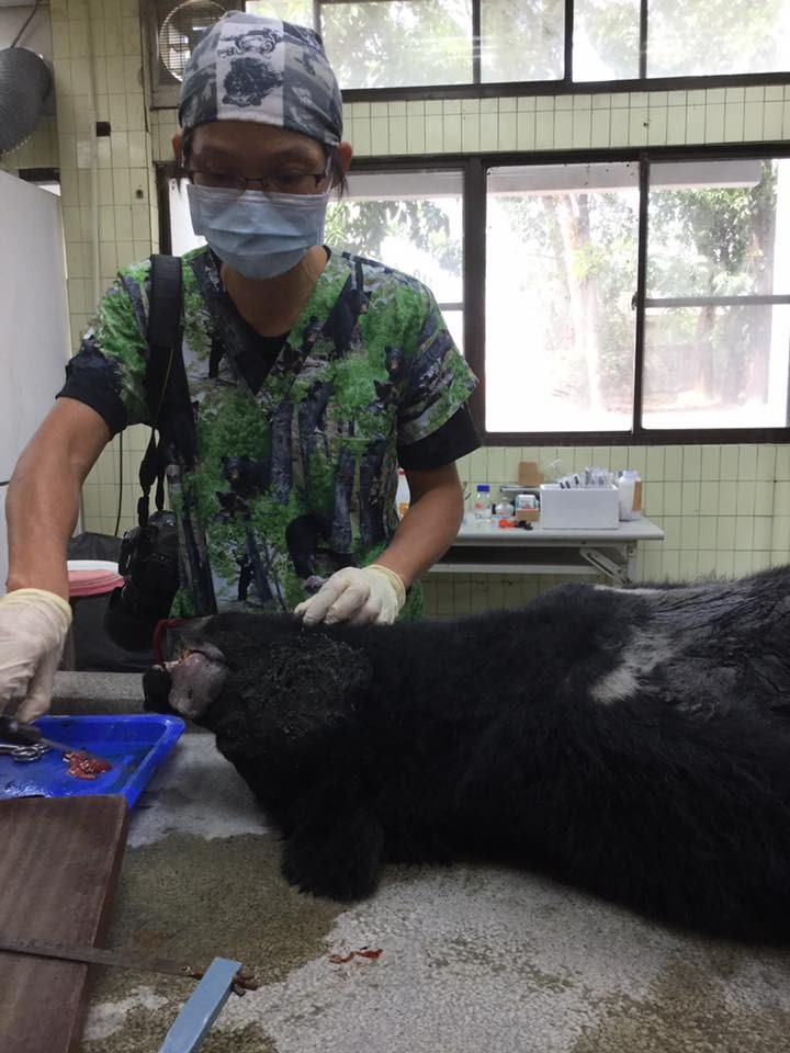 黃美秀說,這隻死亡台灣黑熊由晶片掃出結果顯示,是一隻未曾被研究標記的個體。遺體經電腦斷層掃描,身上無致命外傷。經解剖後,胃部有食物,肺部無進水(通常溺死多數肺泡腔内充滿液體,造成肺積水,肺泡高度擴張以至破裂,支氣管腔內出血;肺切片可見到吸入液體中的異物,如泥沙、水草、嘔吐物中的食物殘渣、浮游生物等。)因此死因排除溺死,外傷出血過多以及餓死。屏科大已採集檢體化驗,檢查有無病毒及毒物反應,盡快釐清黑熊死因。畢竟黑熊死因還是得透過病理解剖做科學判斷。至於斷指、斷掌案例的比例確實很高,也是必須請獸醫試著判定原因。黃美秀也說這是她見過最慘的斷掌再斷趾的成年母熊,重57公斤,145公分。曾有繁殖紀錄,3對乳頭有2對顯示曾哺乳過;左前肢腳掌斷,右前肢第5指斷,也顯示落難前至少誤中陷阱2次。另外,由牙齒齒式完好度判定此熊應為青壯年期,初估約10歲,一般野外存活約25-30歲。