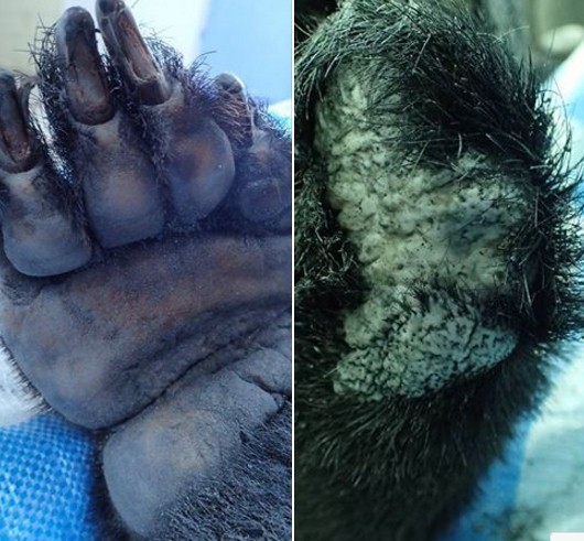 左圖:右前肢,第五趾斷趾。右圖:左前肢,整個斷掌。黃美秀提供