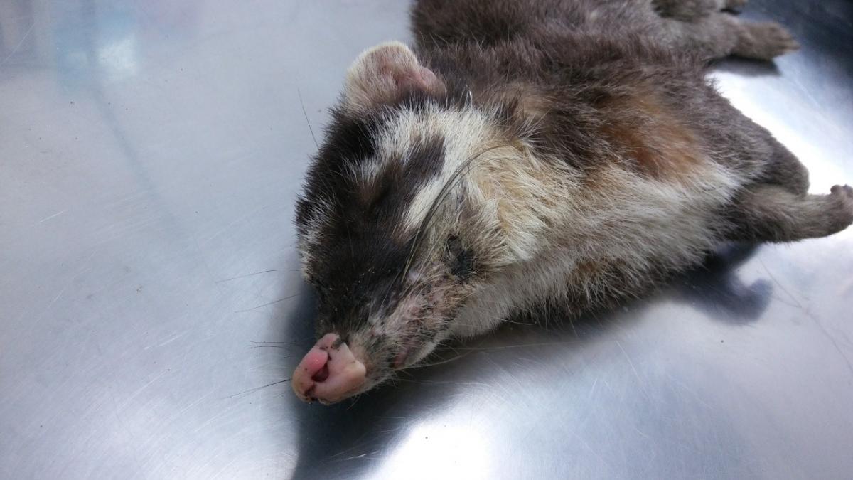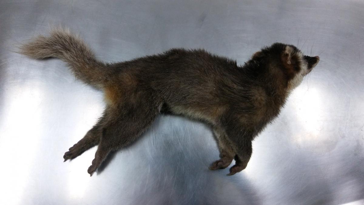 台東確診為狂犬病陽性案例的鼬獾誤傷人後翌日死在該比丘尼住家門前。行政院農業委員會動植物防疫檢疫局提供