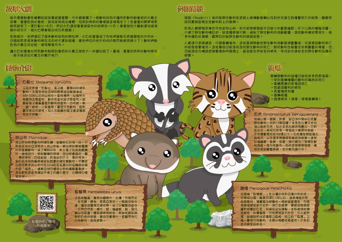特有生物研究保育中心路殺社未來3年將與公路總局合作辦理「中部地區友善道路改善計畫(苗栗、台中及南投地區省道)」。由於動物車禍事件(簡稱「路殺」)的發生,有相當比例的原因是起於用路人的疏忽所致,因此為了讓更多國人能正視此議題,並從改變自身駕駛行為作起,特與國內藝文團體「鐵支路邊創作體」合作,以國內常見且易受路殺威脅的石虎、穿山甲等5種中型哺乳類為故事主角,創作編寫一輕鬆、有趣且易懂的生態保育舞台劇,希望透過巡迴推廣表演的方式,來提醒國人重視動物車禍(路殺)、環境保護和交通安全等議題。