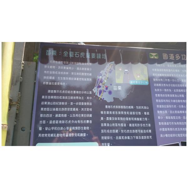 路殺友善設施 紀錄時間2014-03-25 11:00地點24.53652,120.73921 苗栗縣通霄鎮 紀錄者 林德恩 道路類型 國道 設施類型 警示牌 補充說明 高速公路局將國道3號鄰近西湖休息站的通霄1號跨越橋,於原橋面約1/3鋪上土壤、種植短灌木和草皮,將之調整為可兼供車輛通行,同時石虎、白鼻心和野兔等動物也能安全使用的跨越橋。該處同時設立小心石虎警示牌及解說牌面 記錄編號511746