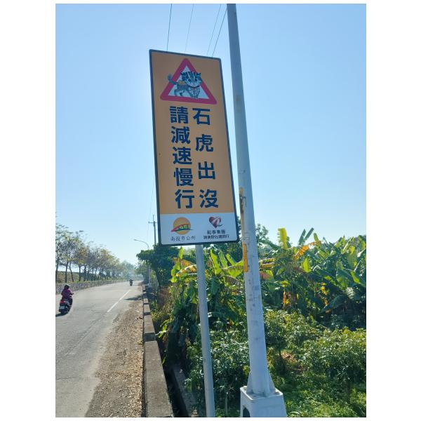 路殺友善設施 紀錄時間2025-01-21 09:55地點23.9378,120.67805 南投縣南投市 紀錄者 王晨翰 道路類型 防汛道路 設施類型 警示牌 補充說明 南投縣南投市環河道路,石虎警示牌。 記錄編號516224