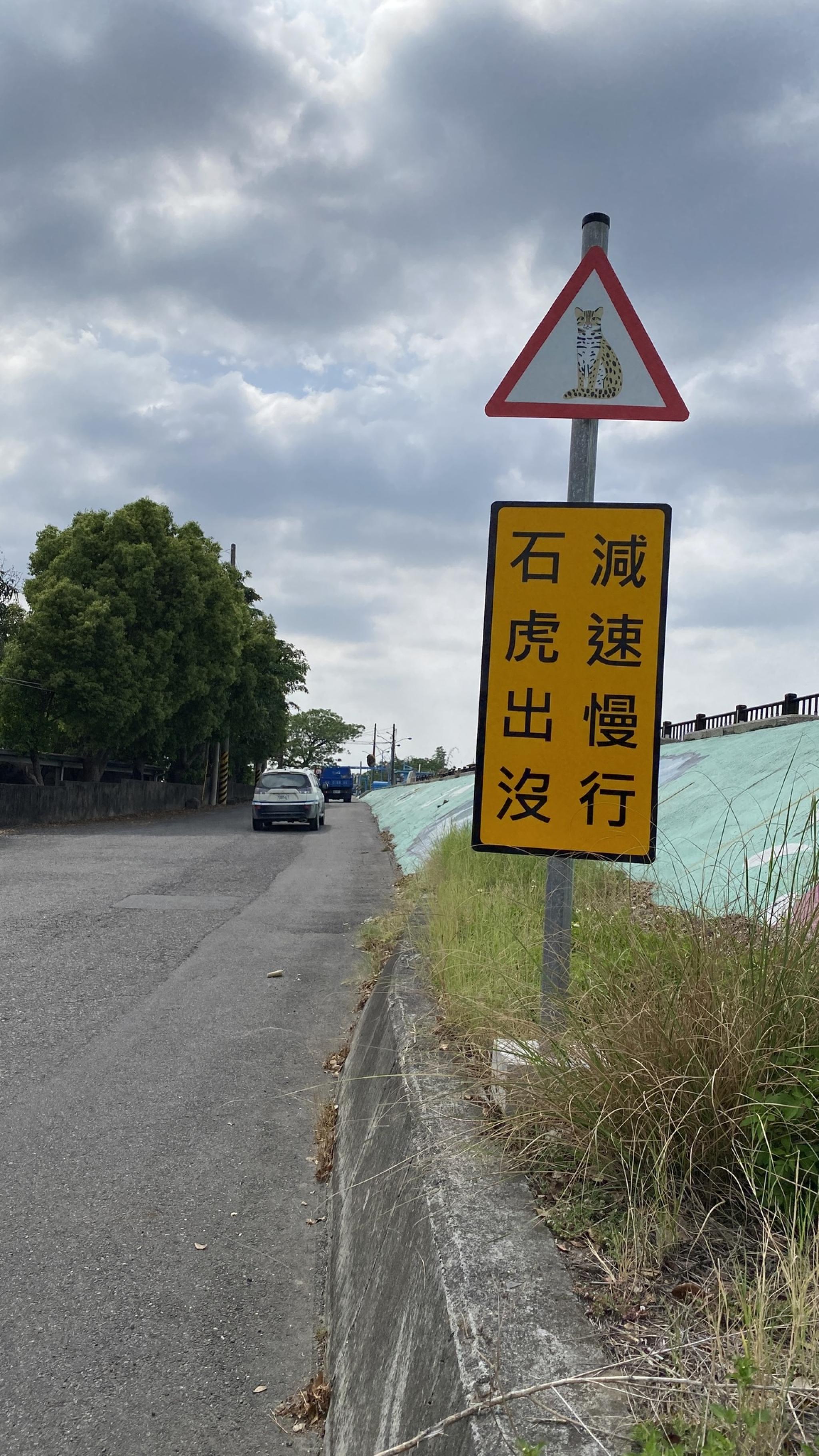 路殺友善設施 紀錄時間2025-04-18 14:47地點23.78264,120.61729 雲林縣林內鄉 紀錄者 林德恩 道路類型 防汛道路 設施類型 警示牌 補充說明 小心石虎警示牌 記錄編號520310