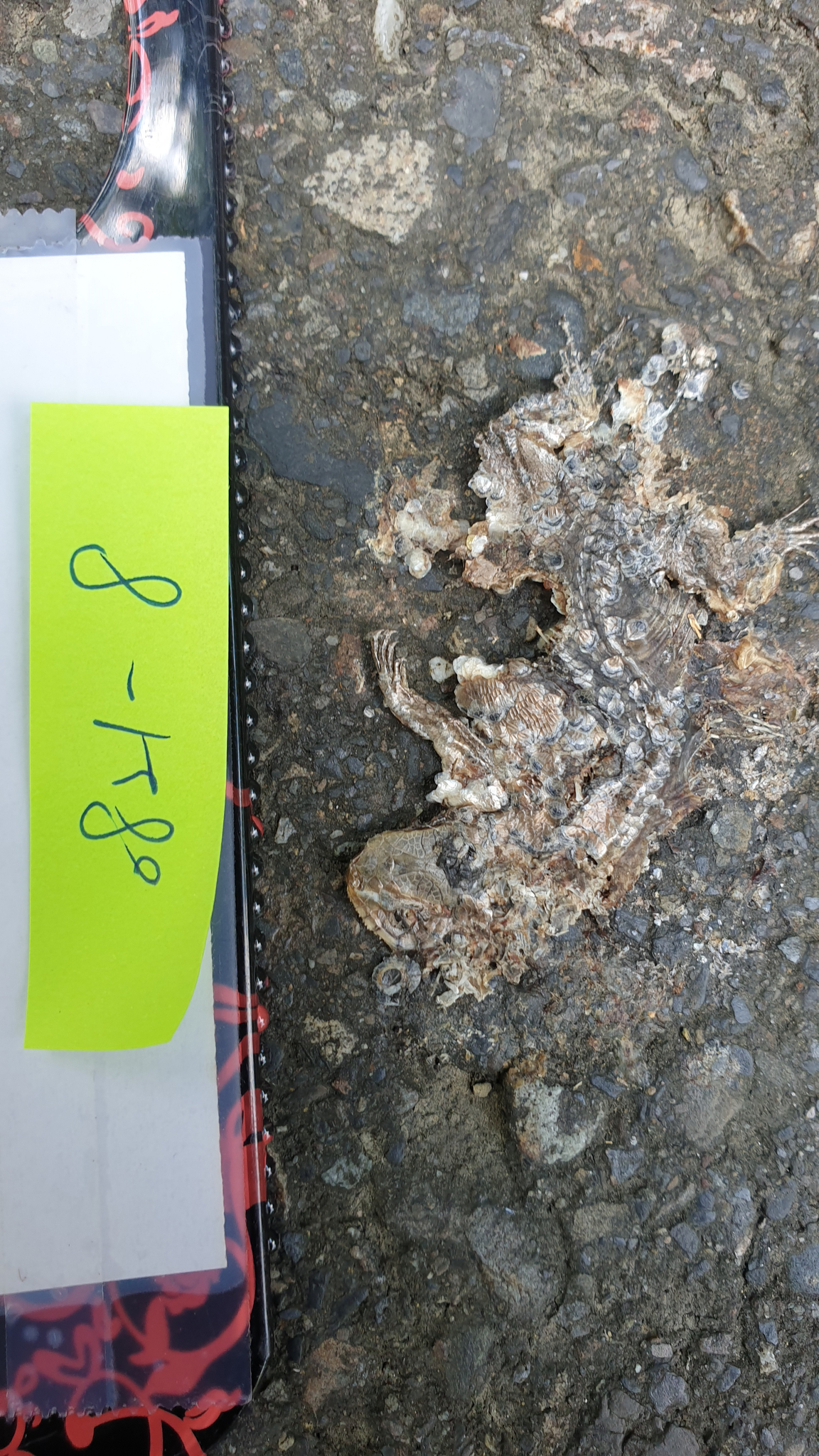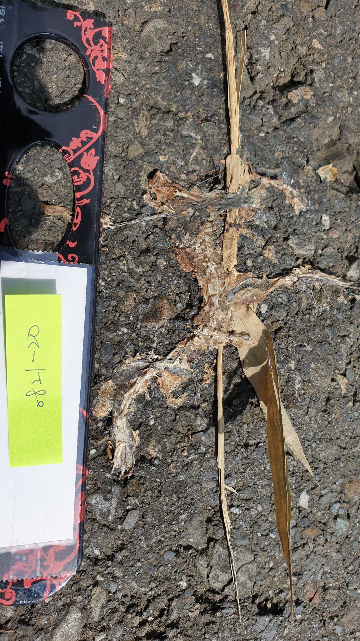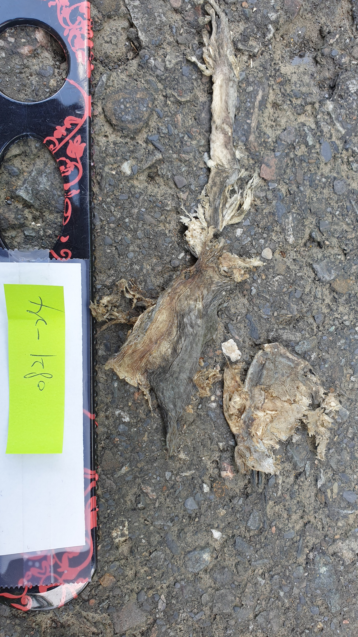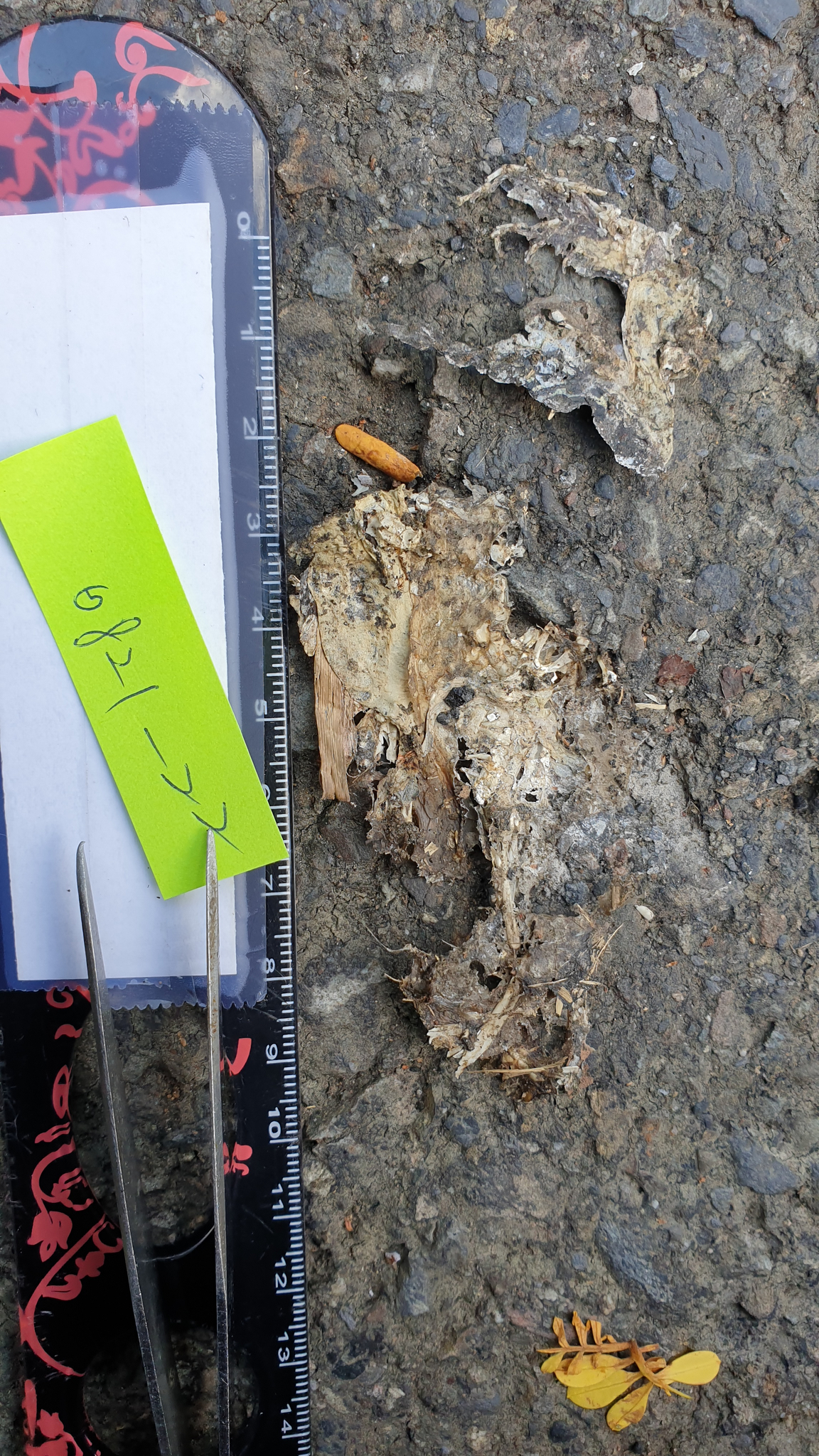 身體已不再現場,僅剩下尾巴及部分表皮,依尾巴型態判斷為斯文豪攀蜥
