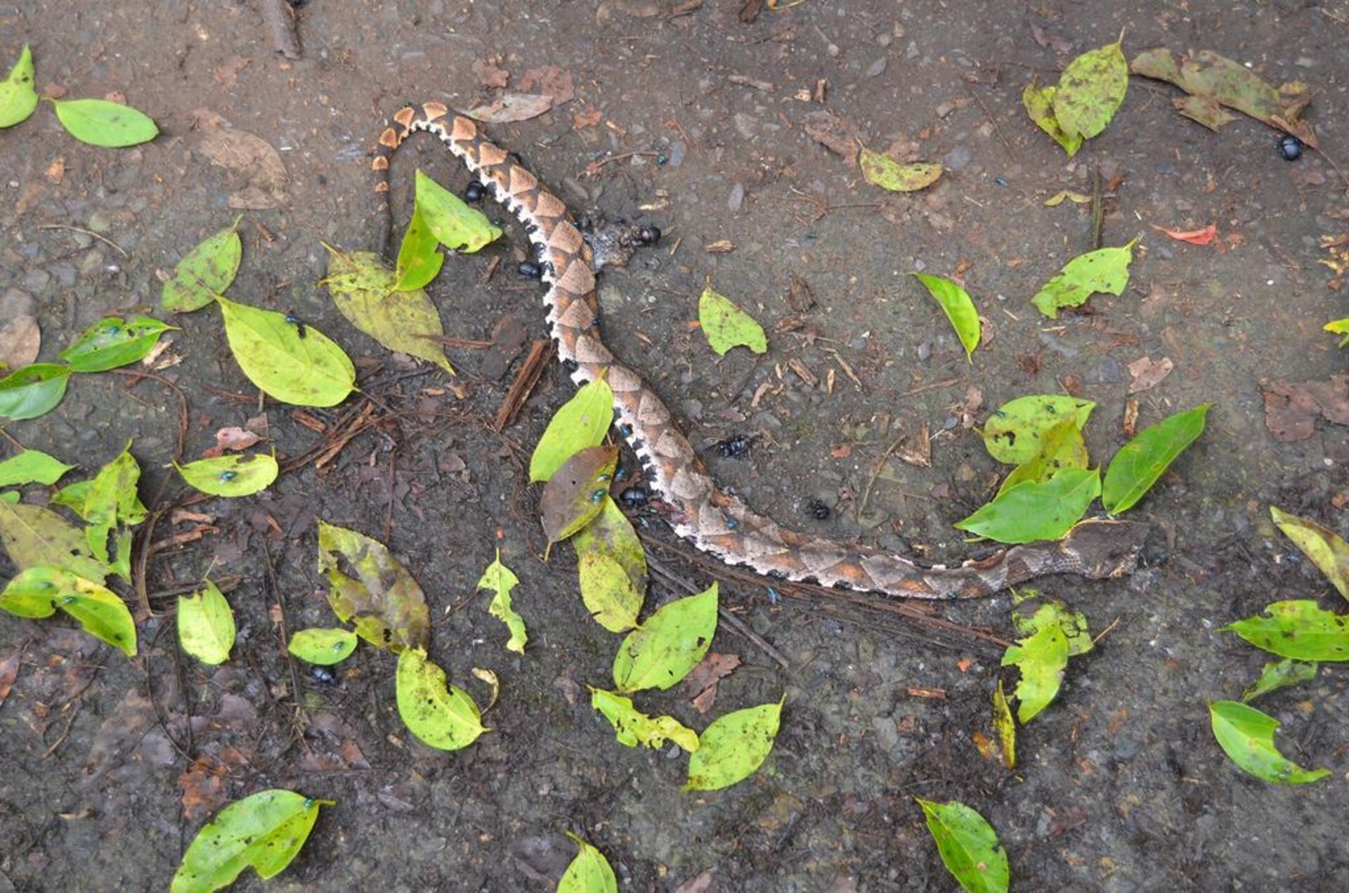 特徵說明: 體側具許多深褐色的三角形斑、背部淺色斑呈前後相連的菱形排列,腹鱗有許多大型黑色斑塊。吻尖且前緣上翹。
