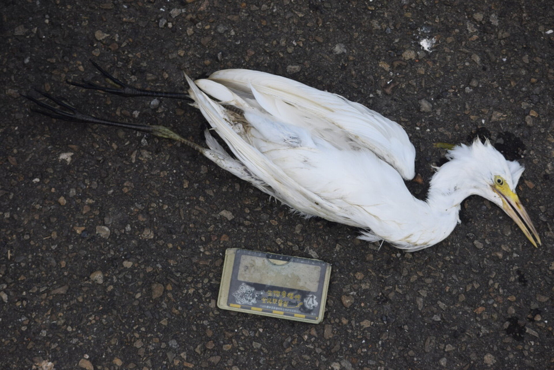 不在馬路上,出現在田中央,懷疑中毒(位於過去偶爾有鳥類集體死亡的地點附近)