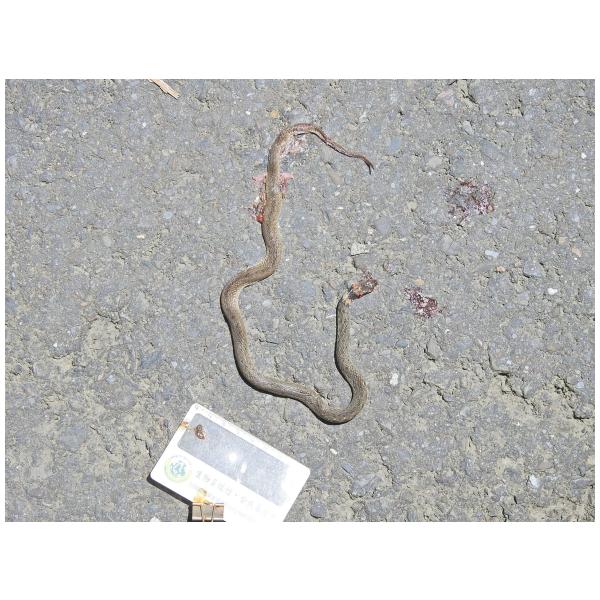 特徵說明: 身體為棕褐色,有黑、土黃色的小斑點散雜其間,頭頸部有一寬而明顯略呈V字型的黑色斑紋,眼睛斜下方和嘴角上方各有一黑色斑塊。