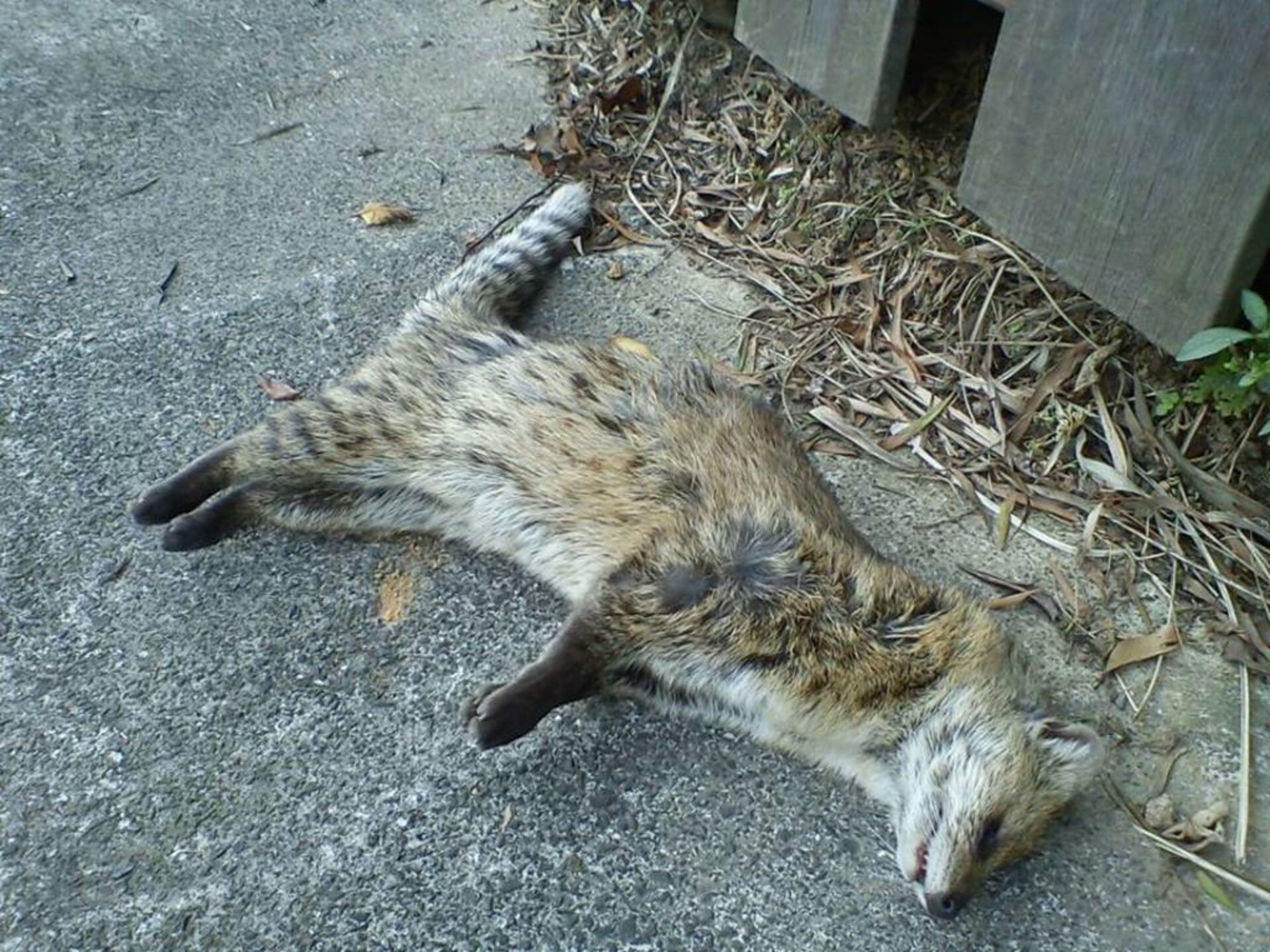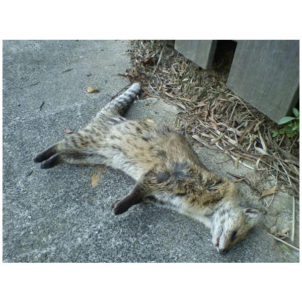 特徵說明: 全身灰黃或淺棕色,背部有棕褐色條紋,體側有黑褐色斑點,頸部有黑褐色橫行斑紋,尾部有黑棕相間的環紋。