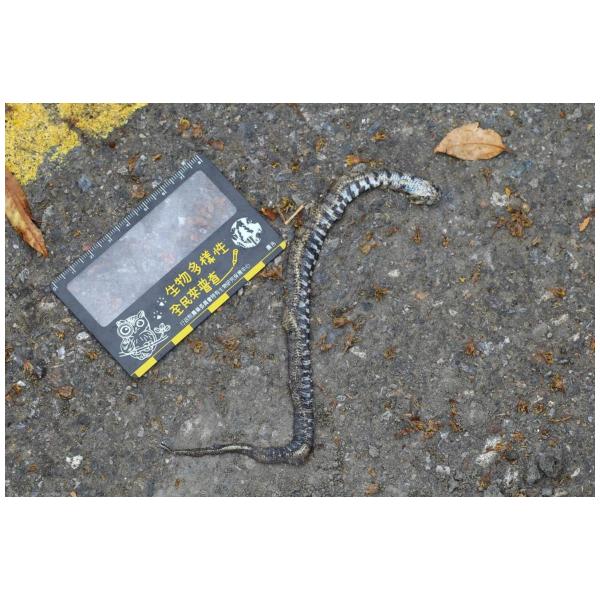 特徵說明: 全身棕黑色,身體有著不規則的黑色橫紋,腹部為灰白色並有著黑褐色的大型斑紋交錯排列或相連成一條橫帶。
