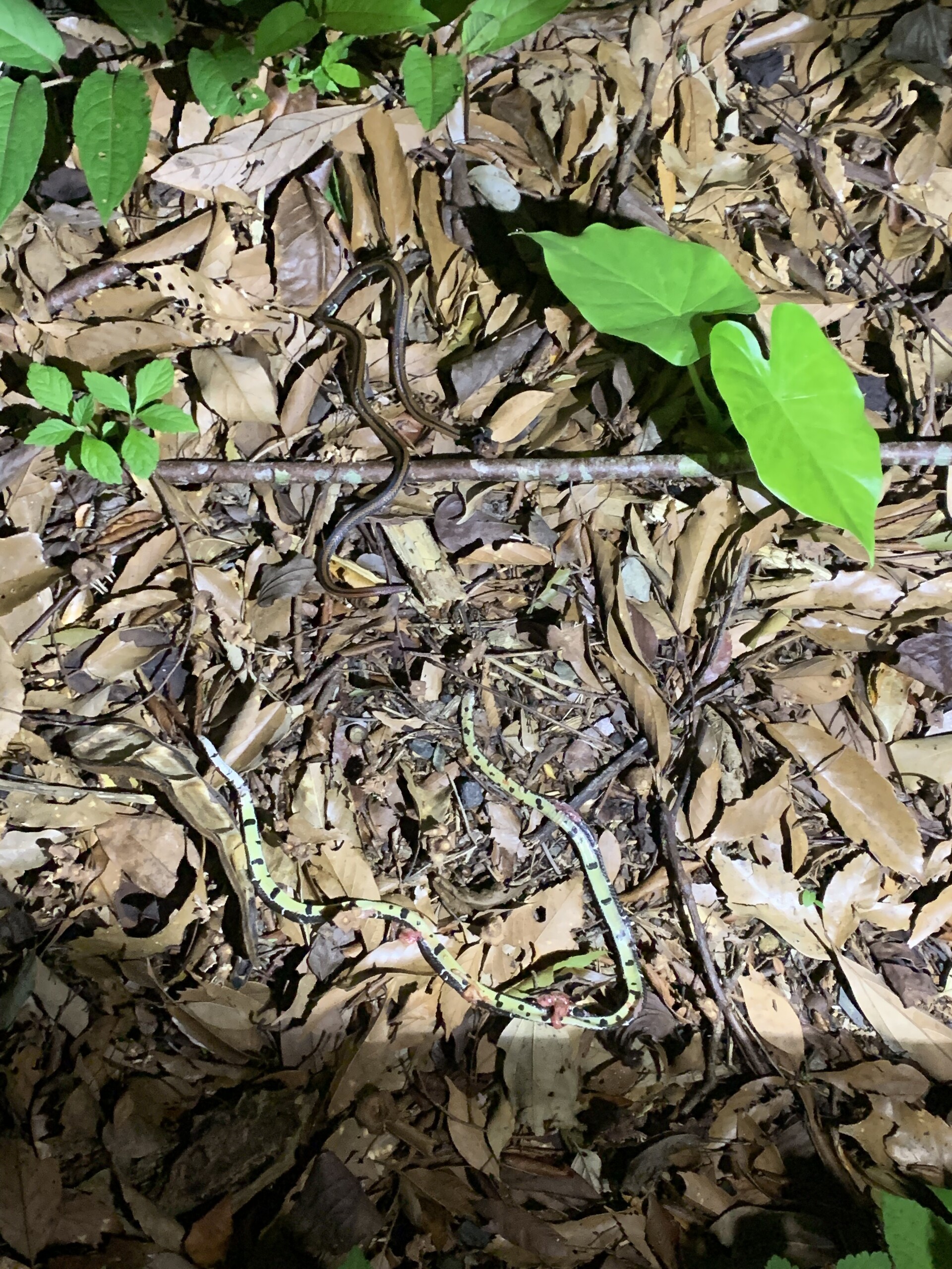 發現點為馬路側邊水泥地,一隻疑似汽車路殺大量臟器外露長度約為50公分,一隻為疑似摩托車路殺較完整長度約為40公分,照片呈現已移至邊坡草叢。