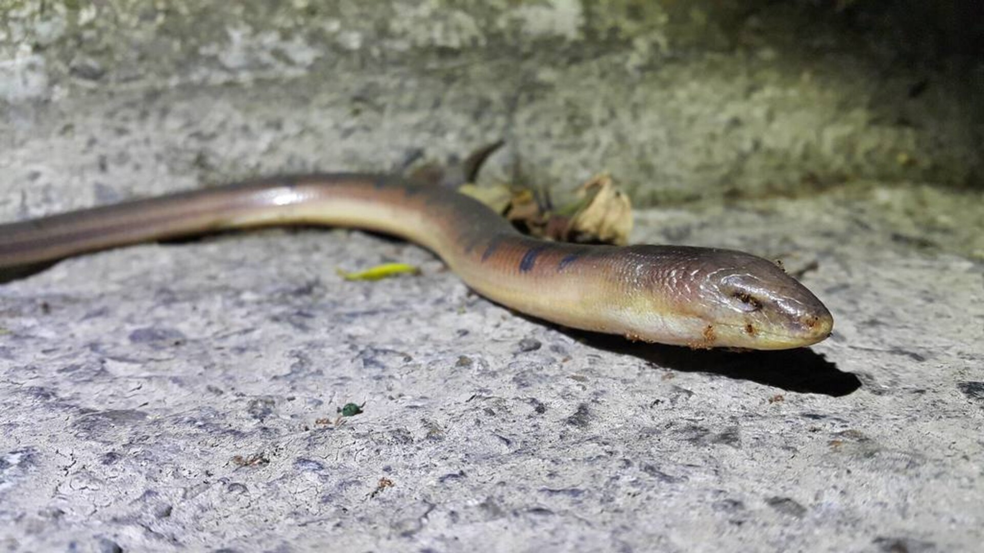 特徵說明: 成體通體以黃褐色為主,背部顏色較深,體腹部褐色則較淺,多數個體於背部有十多條藍色橫斑的分布。