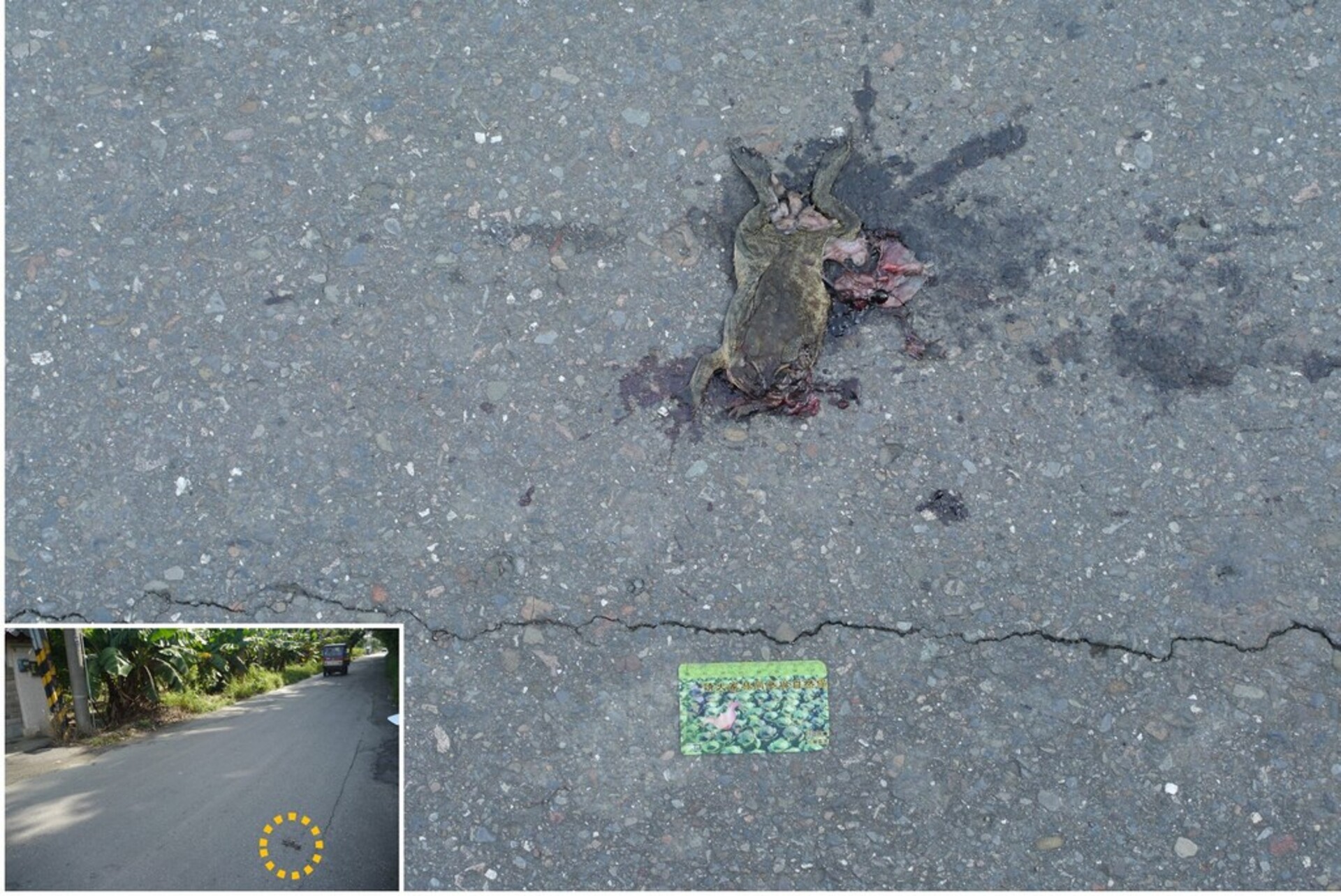 物種黑眶蟾蜍 Duttaphrynus melanostictus[原始紀錄物種] --鑑定 ● 鑑定時間未知敏感層級紀錄時間2013-08-16 00:00地點23.09986,120.383849,33 台南市山上區記錄者林雅鈴數量1 死因 路殺 類群 標本未採集標本 補充說明 鑑定題庫兩棲類: 學習級 I、學習級 II、考試級 I 特徵說明: 眼睛上緣有黑色骨質稜起,有明顯的耳後腮腺。 授權照片授權: CC BY (林雅鈴)識別號21af9d4a-620b-433f-a101-70d6ee100d41 (OccurrenceUUID)335 (nid)