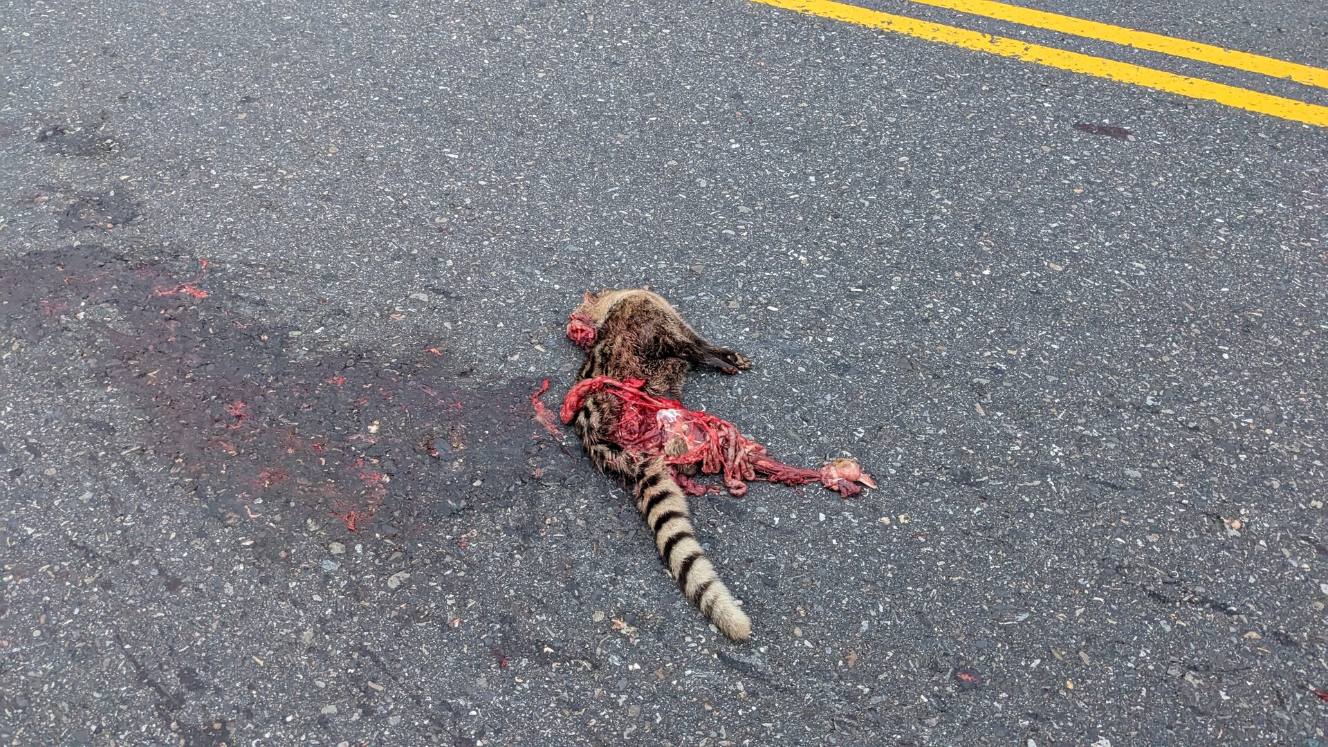 身體已冷 但拾起時仍在滴血 也未僵硬 前一晚經過時還沒有 可能是凌晨發生的事情