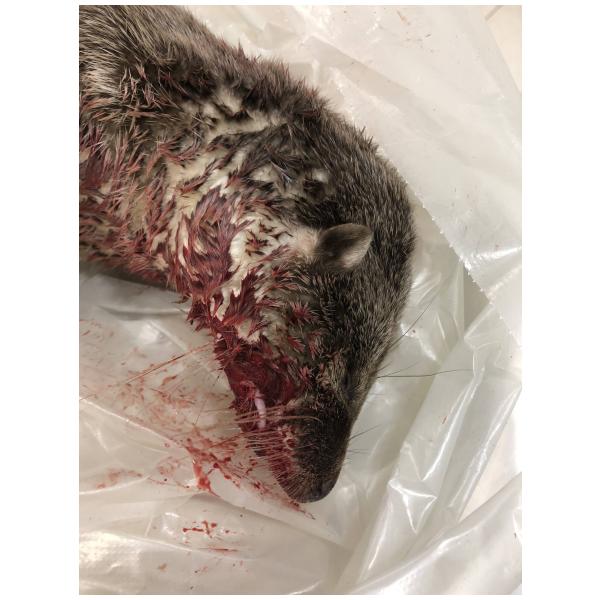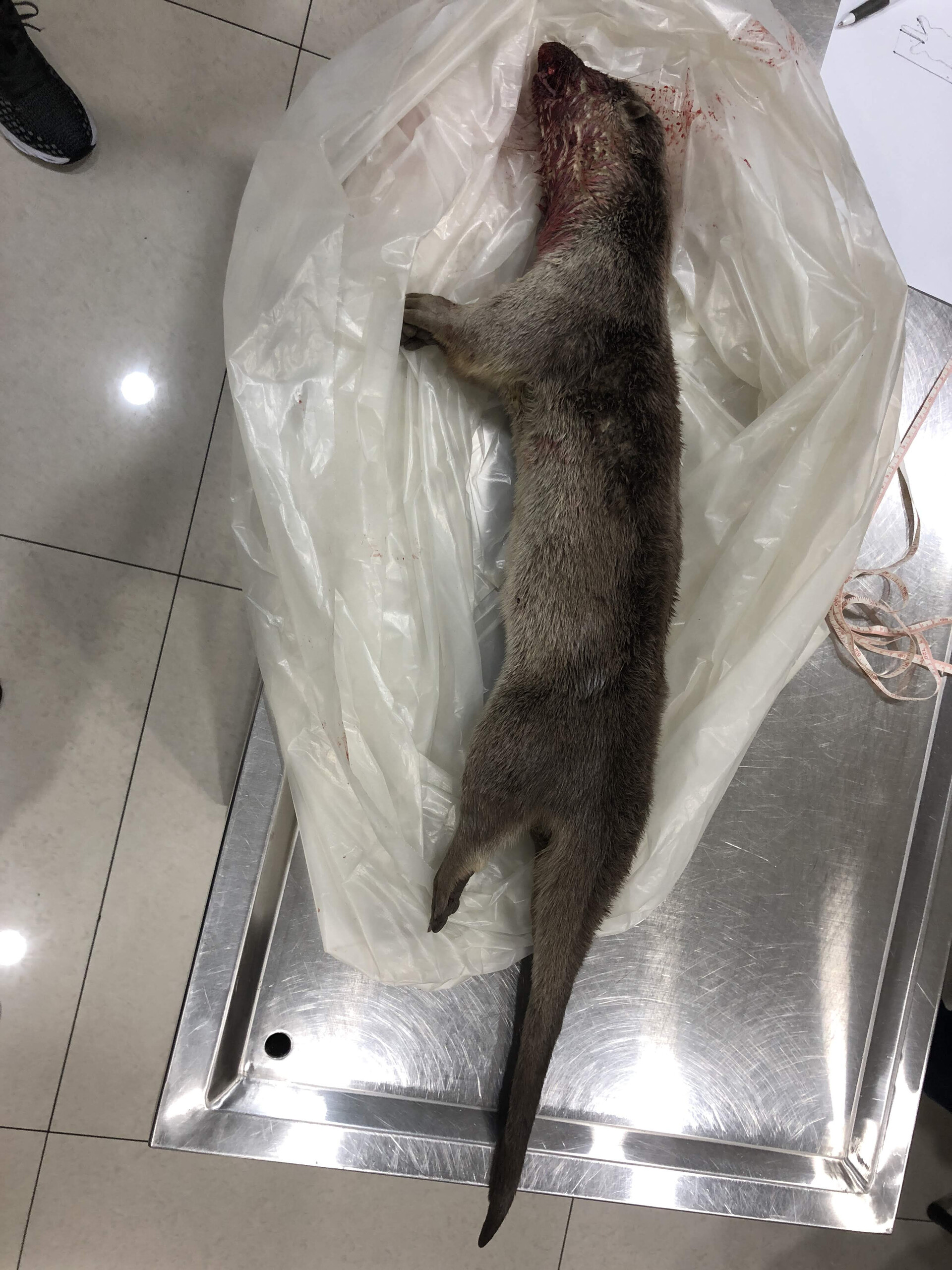 8月21日晚間8時43分縣府接獲莊老師通報於伯玉路往高坑叉路口發生死亡水獺1隻(車禍),縣府於9時27分抵達現場處理