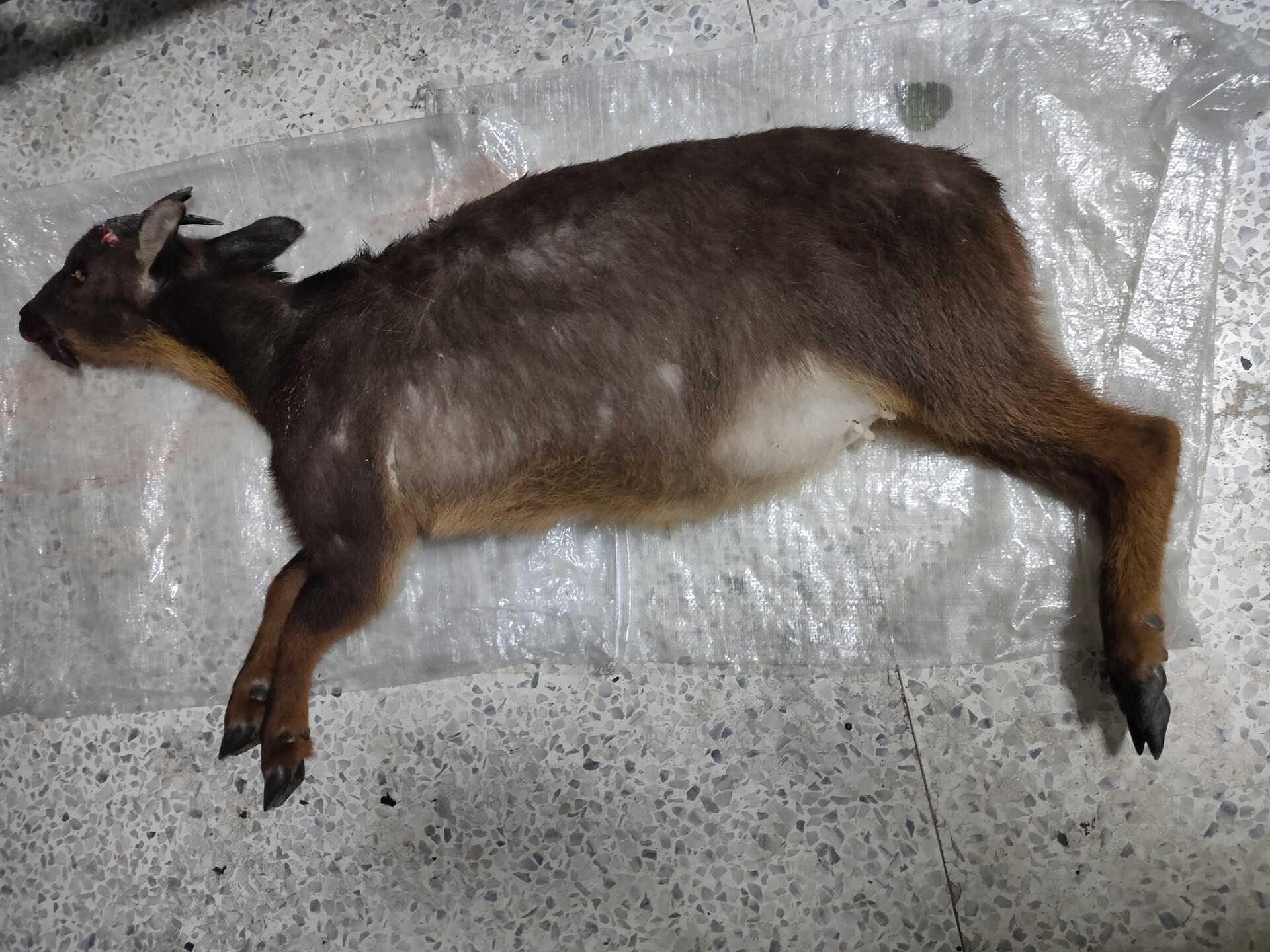 天祥派出所員警7/7下午大約15:30巡邏時發現,懷孕的母山羊疑似失足自崖壁掉落公路上,轉交太管處處理。(近流芳橋隧道東口)