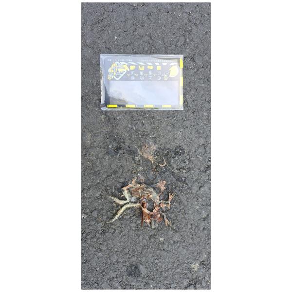 遺體上覆有蜚蠊殘骸,推測可能是蜚蠊取食屍體時受到二次路殺