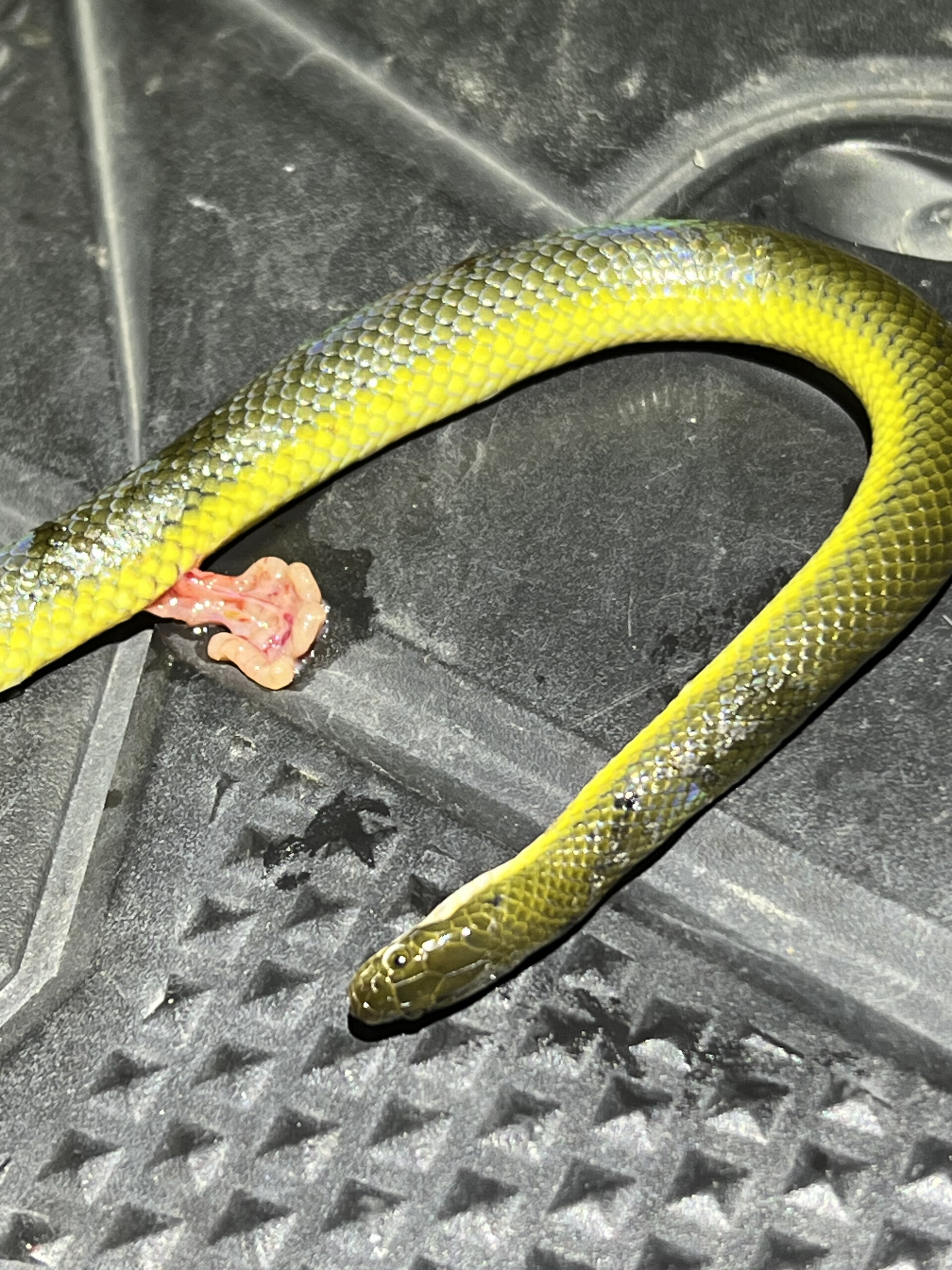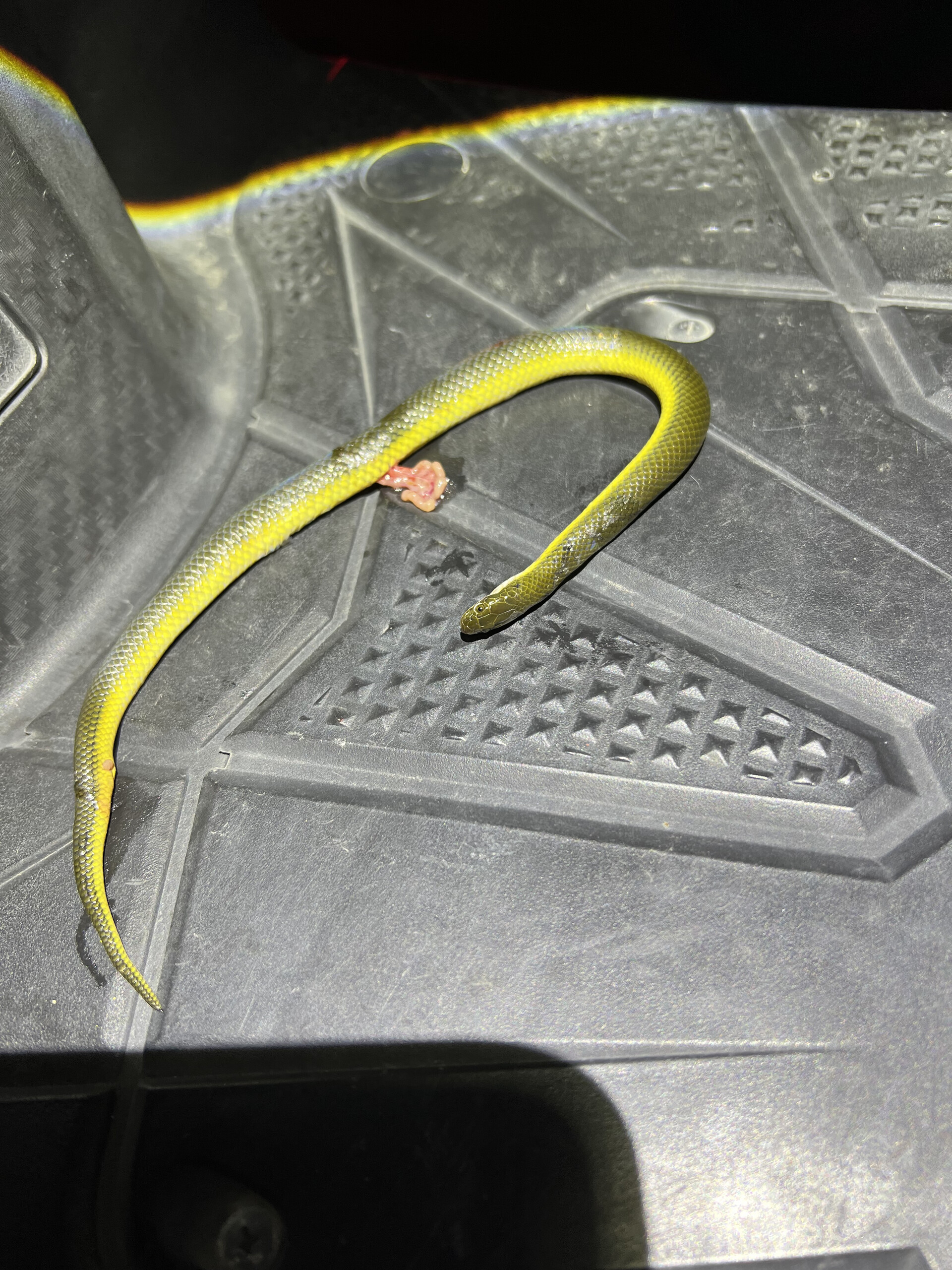 感覺是二級保育類的水蛇,被我發現在路上,移到我的腳踏板拍照,真的好可惜