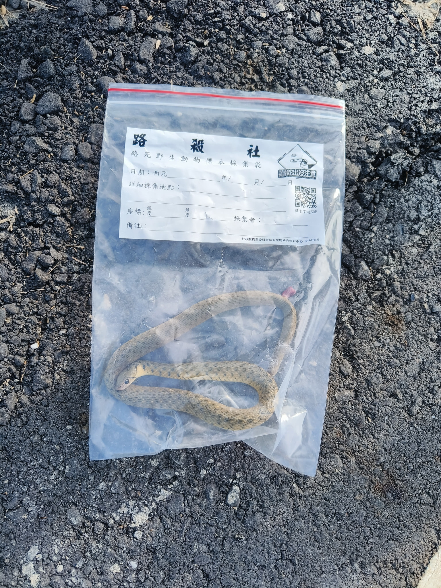 這隻的際遇非常離奇,詳見路殺社貼文。我遇到他的時候的確在路上,不過後來為了安全所以有個阿伯幫我把牠移到路邊了。第一張有比例尺的照片那時候牠還沒死,我看著牠掙扎到死……。