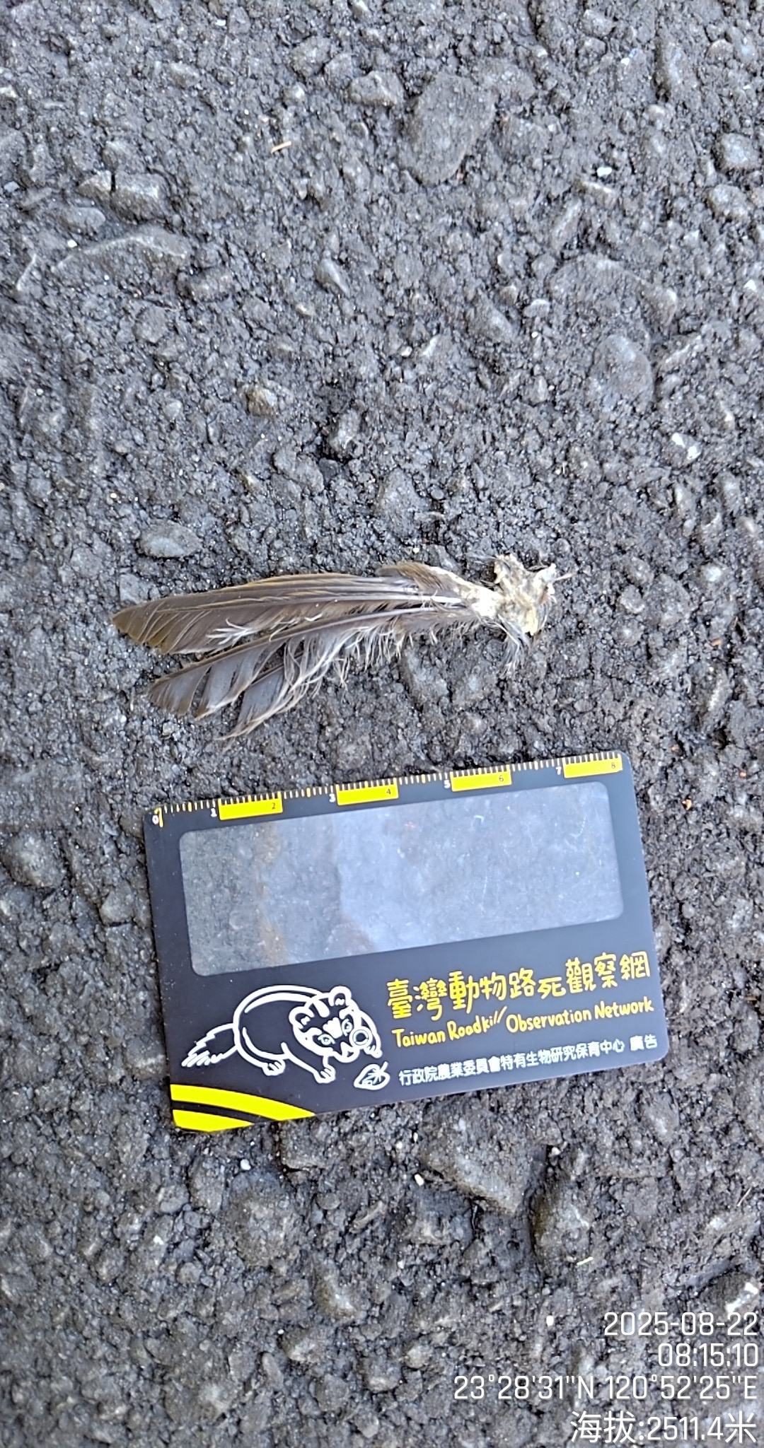 物種雀形目 Passeriformes (未鑑定)[原始紀錄物種] 雀形目 Passeriformes鑑定未鑑定敏感層級座標不開放紀錄時間2025-08-22 08:15地點記錄者Double Lin調查活動調查活動 530742數量1 死因 野動殺 類群 鳥類 標本未採集標本 補充說明 應該是被吃剩的手 鑑定題庫授權照片授權: CC BY (Double Lin)識別號626e3676-b887-490a-a008-d0946999b769 (OccurrenceUUID)530744 (nid)