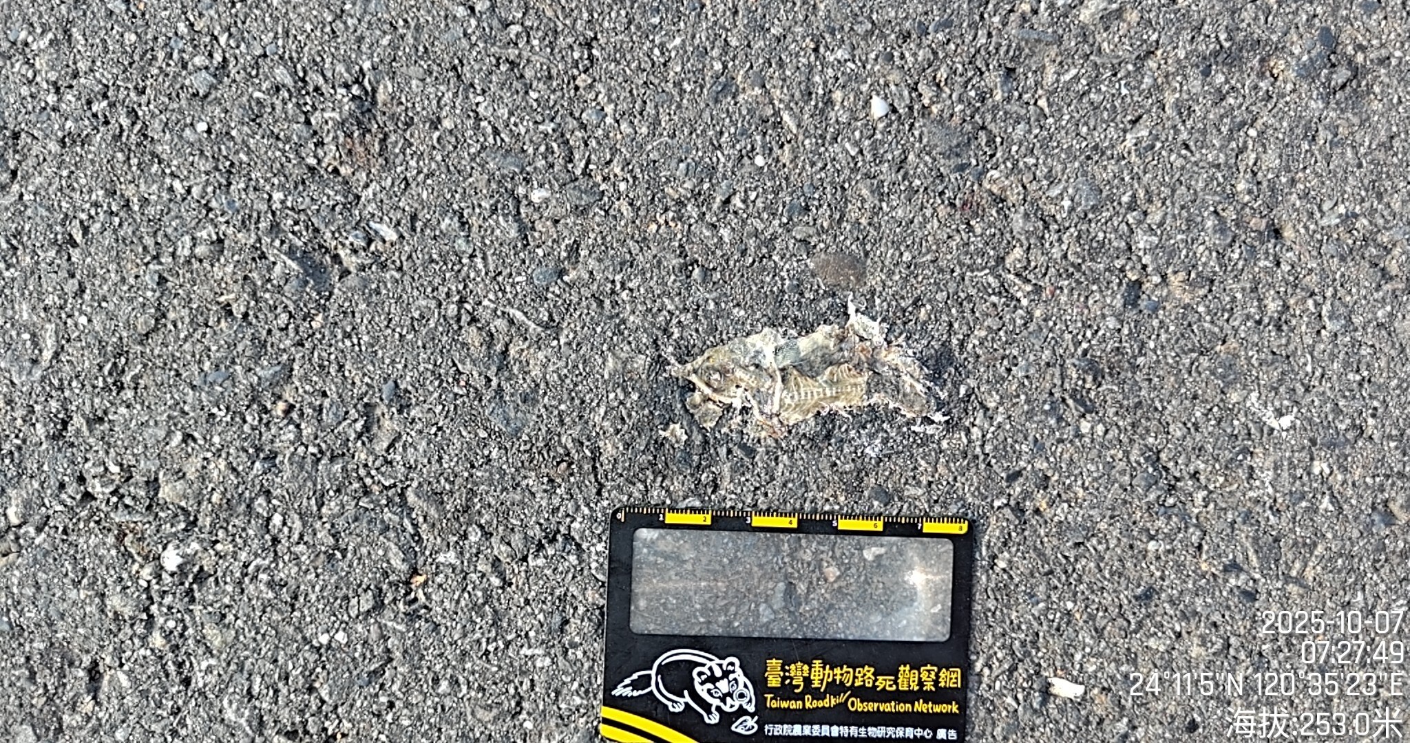 物種--- (未鑑定)[原始紀錄物種] --鑑定未鑑定敏感層級座標不開放紀錄時間2025-10-07 07:27地點記錄者超生 (Double Lin)調查活動2025秋季(十月)系統化路死動物暨遊蕩犬貓數量調查: 調查活動 534182數量1 死因 路殺 類群 爬行 標本未採集標本 補充說明 鑑定題庫授權照片授權: CC BY (Double Lin)識別號07acd79c-70bc-4513-ae51-e66d0a815f98 (OccurrenceUUID)534190 (nid)