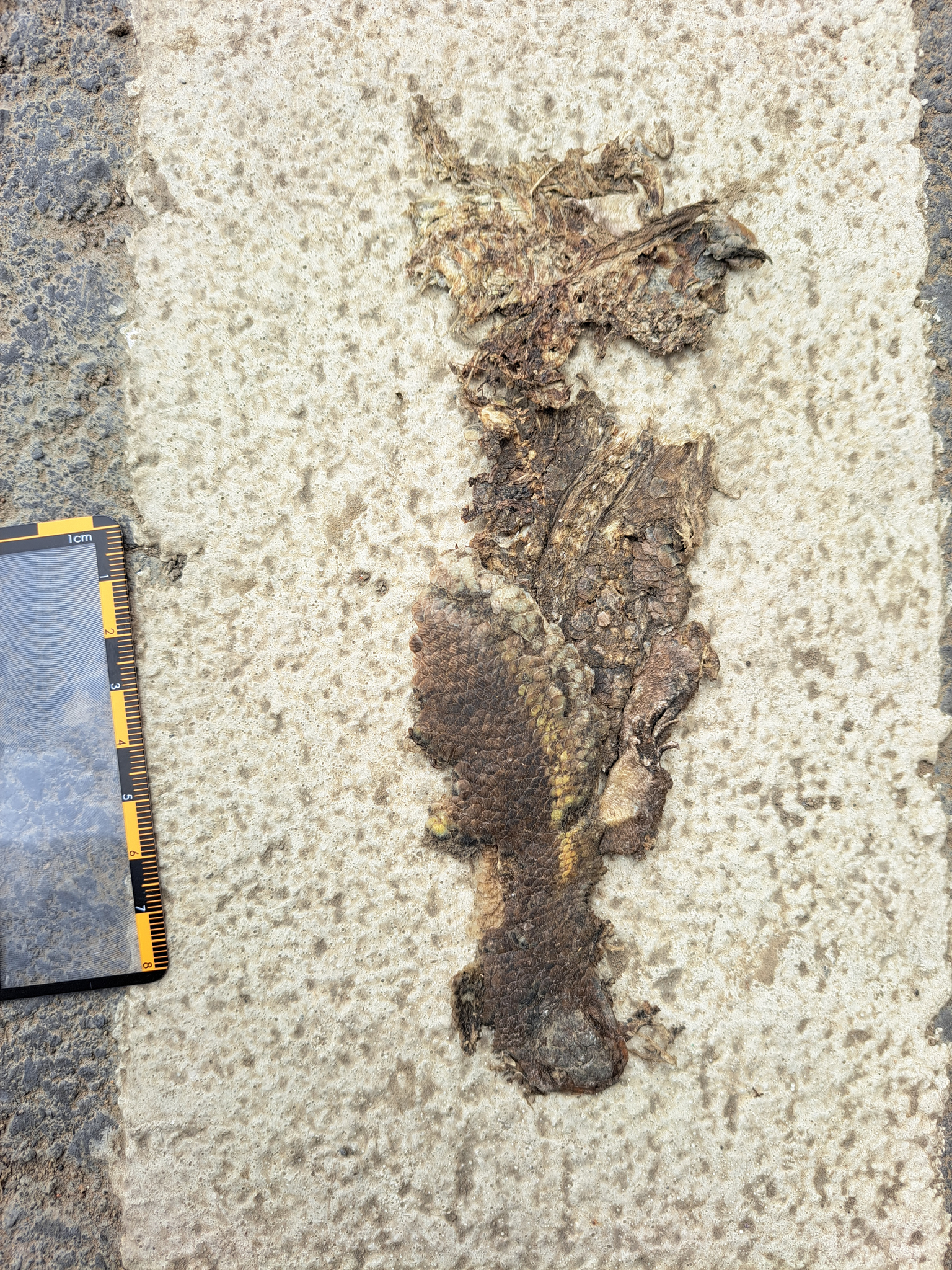 特徵說明: 體側具有橘黃色色帶以及雜斑,鱗片具有強稜脊,故判定為多線真稜蜥。