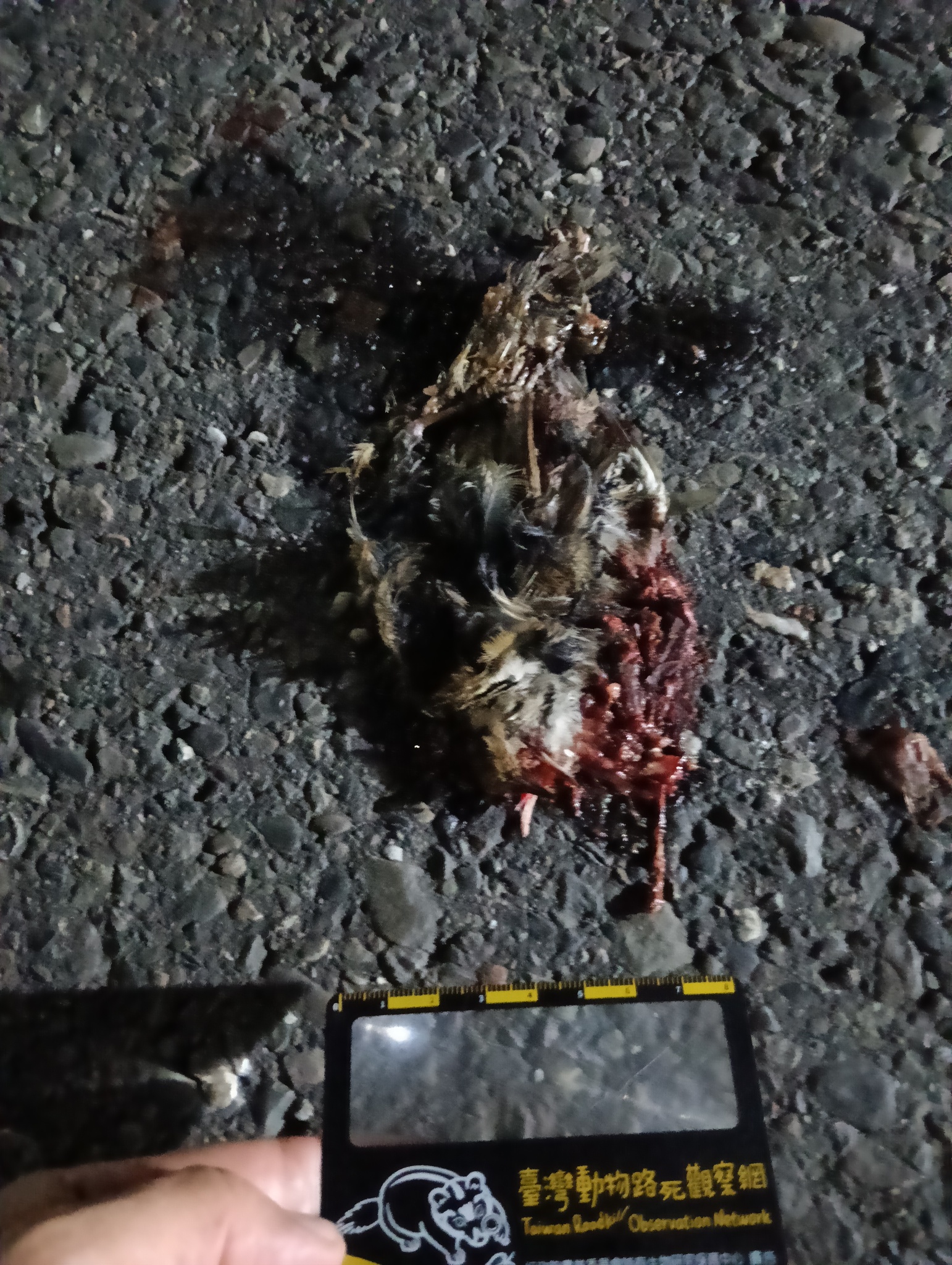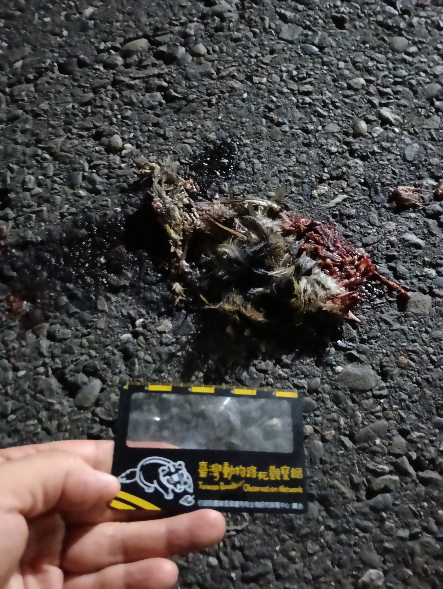物種--- (未鑑定)[原始紀錄物種] --鑑定未鑑定敏感層級座標不開放紀錄時間2026-04-03 20:53地點記錄者Alina Yeh數量1 死因 路殺 類群 鳥類 標本未採集標本 補充說明 鑑定題庫授權照片授權: CC BY (Alina Yeh)識別號72ecaa50-e88a-4b3e-bfe1-77a4f8ed929b (OccurrenceUUID)554779 (nid)
