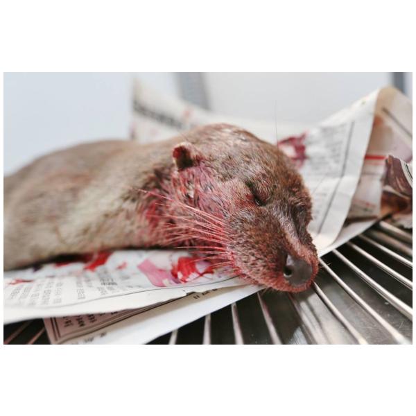 於山外黃海路陽明湖測速照相旁,一位黃先生於路邊發現死亡水獺。