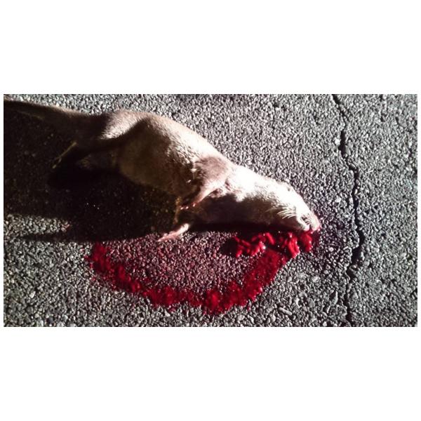 20160204,晚間18:53經金門縣野生動物救援暨保育協會會員陳淑亭通報,發現時水獺仍會輕微抖動,金門縣府於19:00抵達現場,路殺地點位列瓊安路上,由瓊林往安岐方向過虎尾溪約15公尺右側車道正中間,馬路右側10公尺處有一座農塘,現場水獺明顯死亡,移動時個體仍有溫度且柔軟,馬上送去歐厝獸醫院,檢查結果頭骨嚴重碎裂。