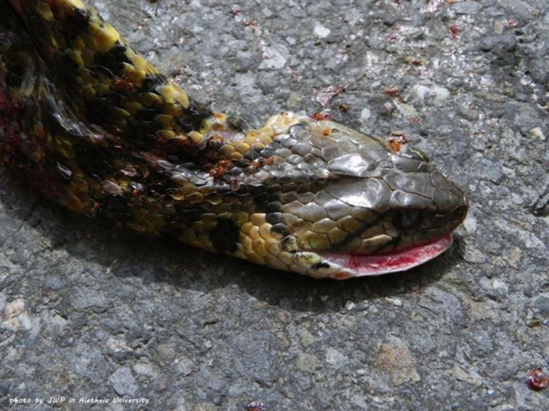 物種草花蛇 Fowlea flavipunctatus[原始紀錄物種] --鑑定 ● 1999-11-30 ● 學名於最後鑑定後更名敏感層級輕度紀錄時間2012-10-18 00:00地點 南投縣 縣道174記錄者蔣文萍數量1 死因 路殺 類群 標本未採集標本 補充說明 鑑定題庫授權照片授權: CC BY (蔣文萍)識別號8939c6e7-ad84-48bd-a1cc-0204fa2f2edf (OccurrenceUUID)6082 (nid)